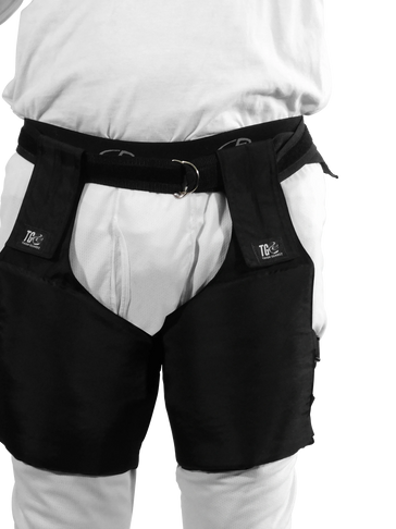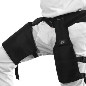 With the Thigh Guardz sleeve locked to the belt, it’s a simple matter of attaching the leg straps.